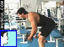 - Rowing haltère (illustration) : travaille l'épaisseur des dorsaux.